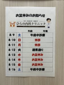 お盆休みは、8月13日(水)~15日(金)の3日間休診とさせていただきます。