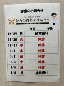 年末年始の診療時間のお知らせになります。